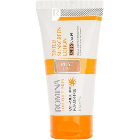 لوسیون ضد آفتاب رومینا بژ رز مناسب برای پوست چرب SPF50 ظرفیت 50 میلی لیتر