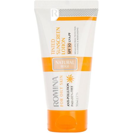 لوسیون ضد آفتاب رومینا بژ طبیعی مناسب برای پوست چرب SPF50 ظرفیت 50 میلی لیتر