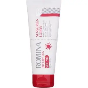 لوسیون ضد آفتاب رومینا بی رنگ مناسب برای پوست چرب SPF 90 ظرفیت 75 میلی لیتر