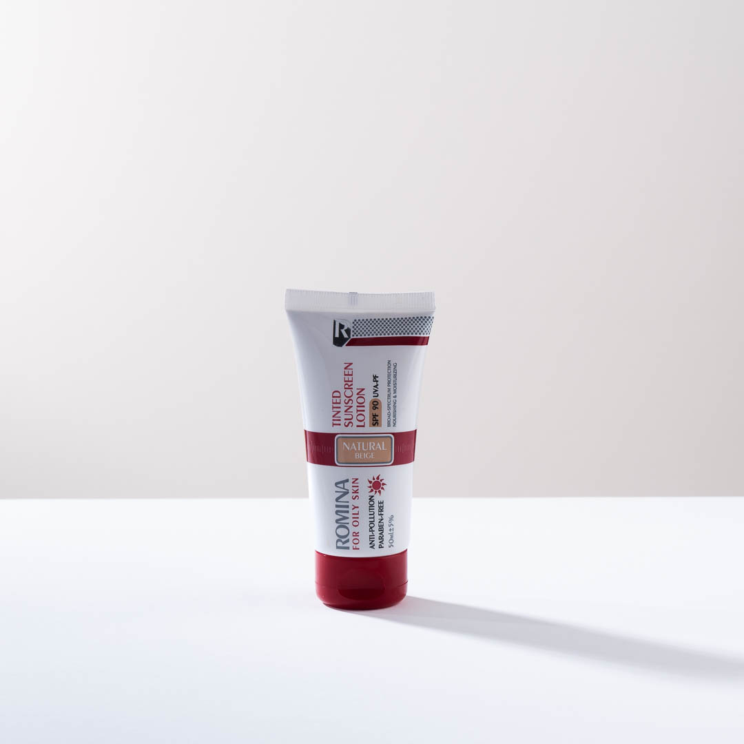 لوسیون ضد آفتاب رومینا بژ طبیعی مناسب برای پوست چرب SPF90 ظرفیت 50 میلی لیتر