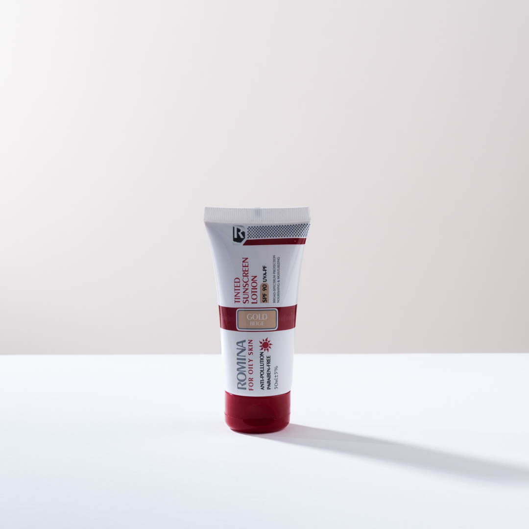 لوسیون ضد آفتاب رومینا بژ طلایی مناسب برای پوست چرب SPF90 ظرفیت 50 میلی لیتر