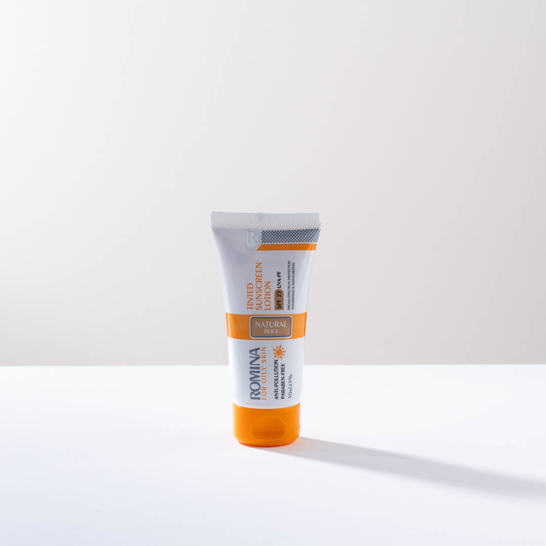 لوسیون ضد آفتاب رومینا بژ طبیعی مناسب برای پوست چرب SPF25 ظرفیت 50 میلی لیتر