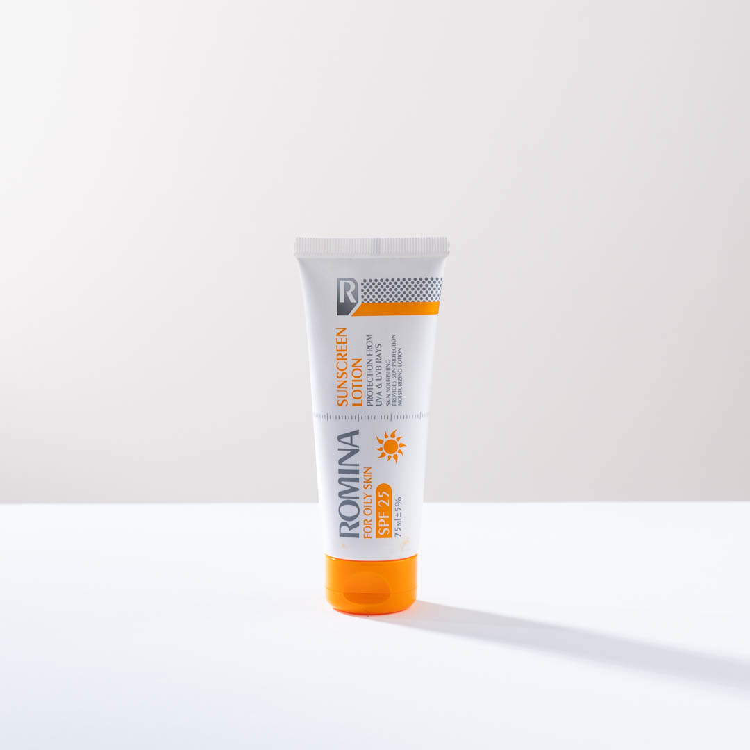 لوسیون ضد آفتاب رومینا بی رنگ مناسب برای پوست چرب SPF 25 ظرفیت 75 میلی لیتر